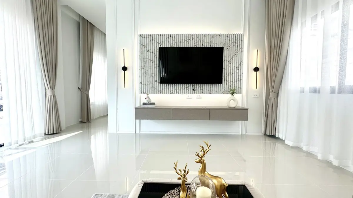 Free built-in TV stand in the living room