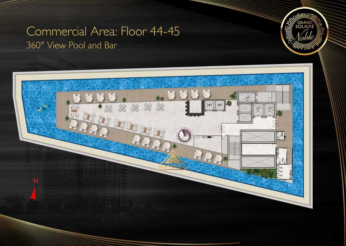 Facilities: Rooftop commercial complex, 44th floor at the 360° Sky Pool