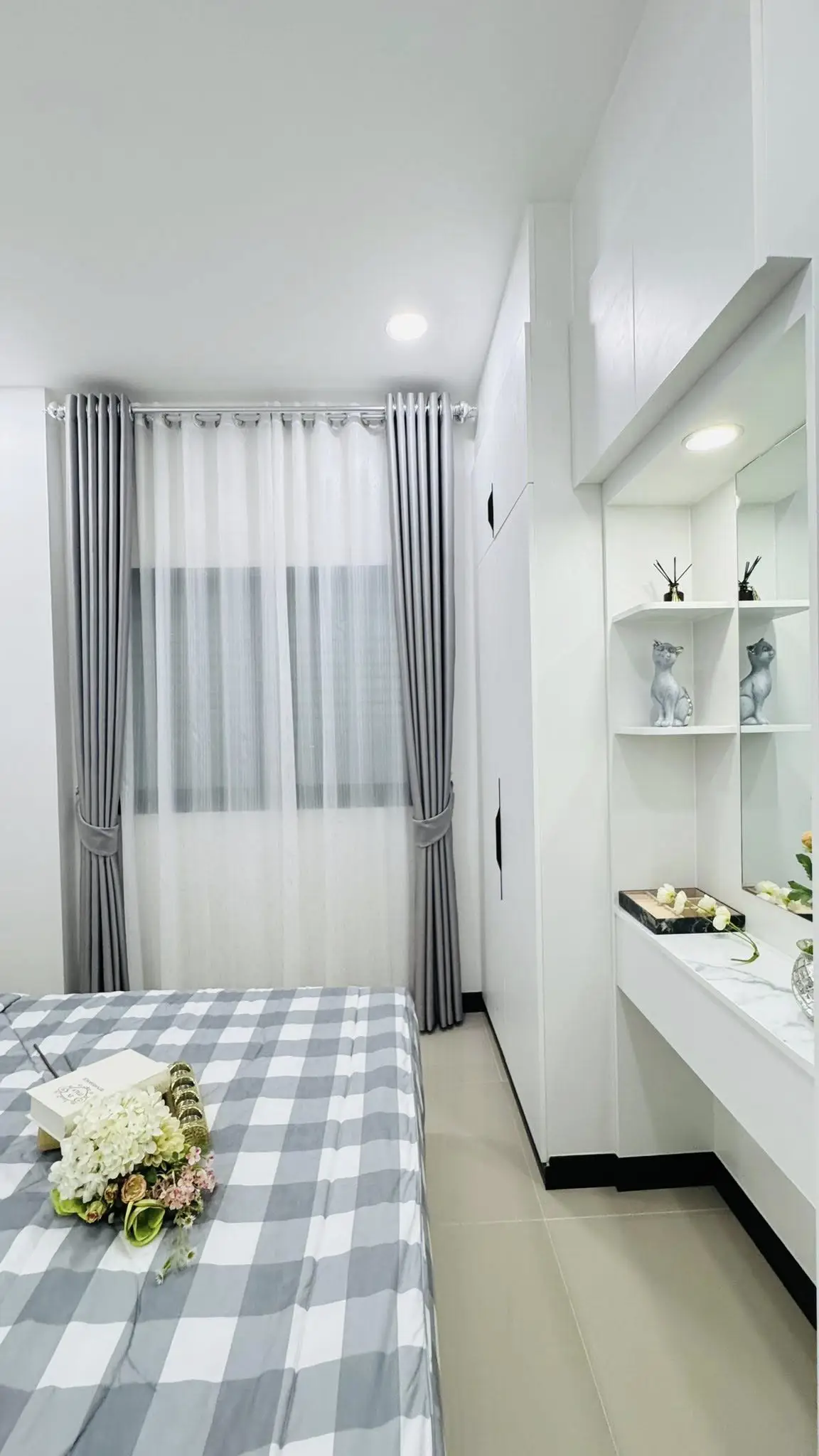 Sheer and blackout curtains throughout the house