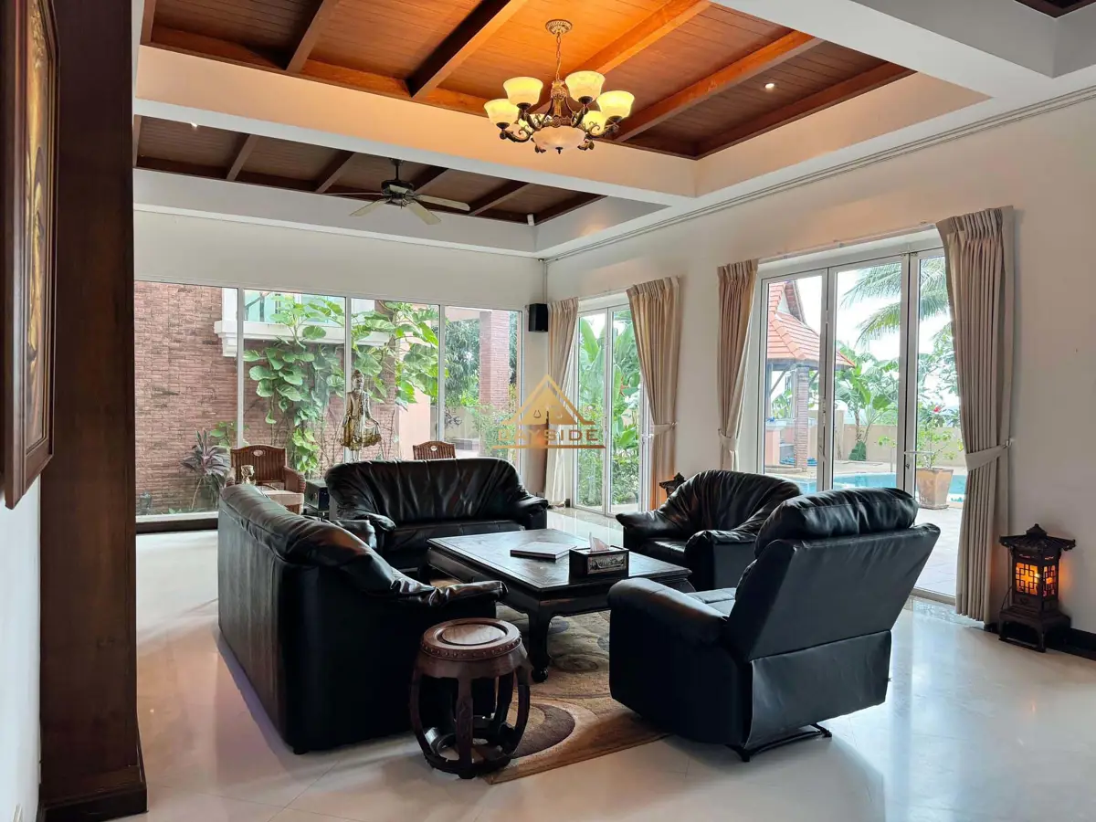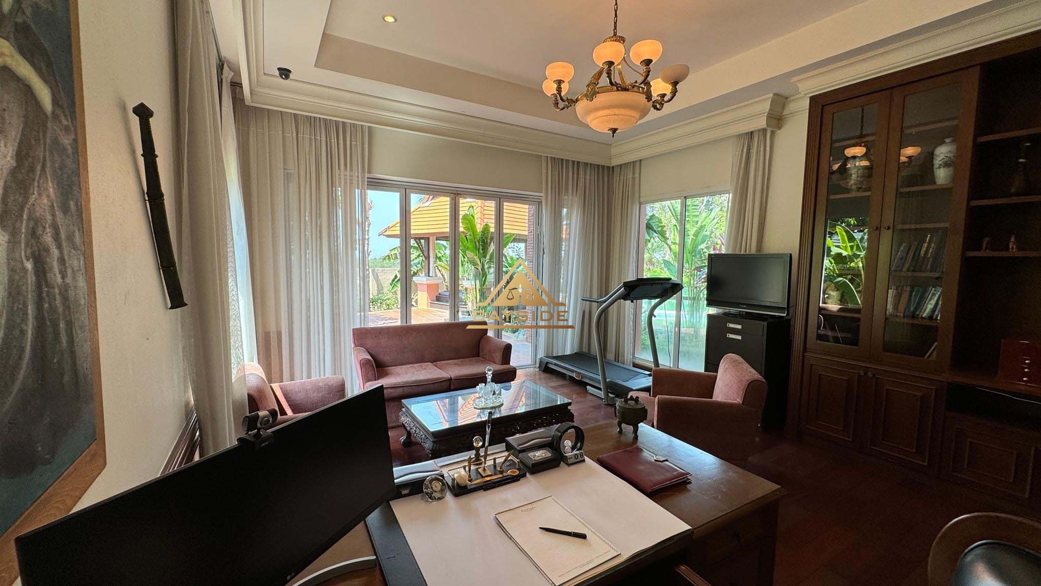 Welcome to your very own private resort! Located in the prestigious Phoenix Gold Golf and Country Club, this large residence has everything you could ask for in a home - large pool, jacuzzi, wine cellar, aviary, tropical ponds, 4 spacious bedrooms, a study, three ensuite bathrooms (plus an additional guest toilet), a Sala Thai, a large aquarium, and even a private elevator to the Master bedroom. Designed by a renowned hotel architect, the build quality of this home is outstanding. The lush gardens, designed by a professor of landscape architecture, provide every room of the house with beautiful views into your very own tropical paradise. Homes built to this high standard are rarely available so don’t miss out