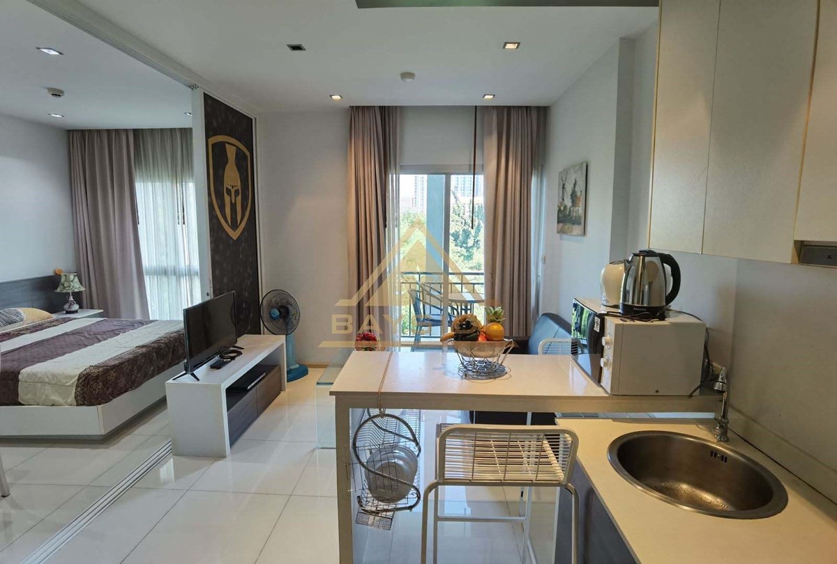 located in Jomtien close to the beach, 1 year contract, this room is 32 sqm, fitted kitchenette, fully furnished, balcony, Flat Screen TV, dining table